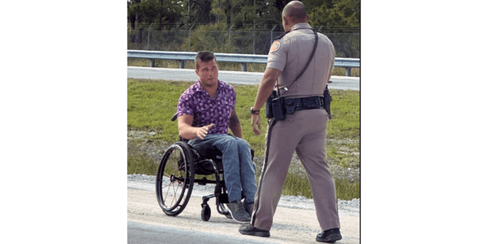 “Suddenly the car door opens and a man in a wheelchair rolls out,” she wrote.
